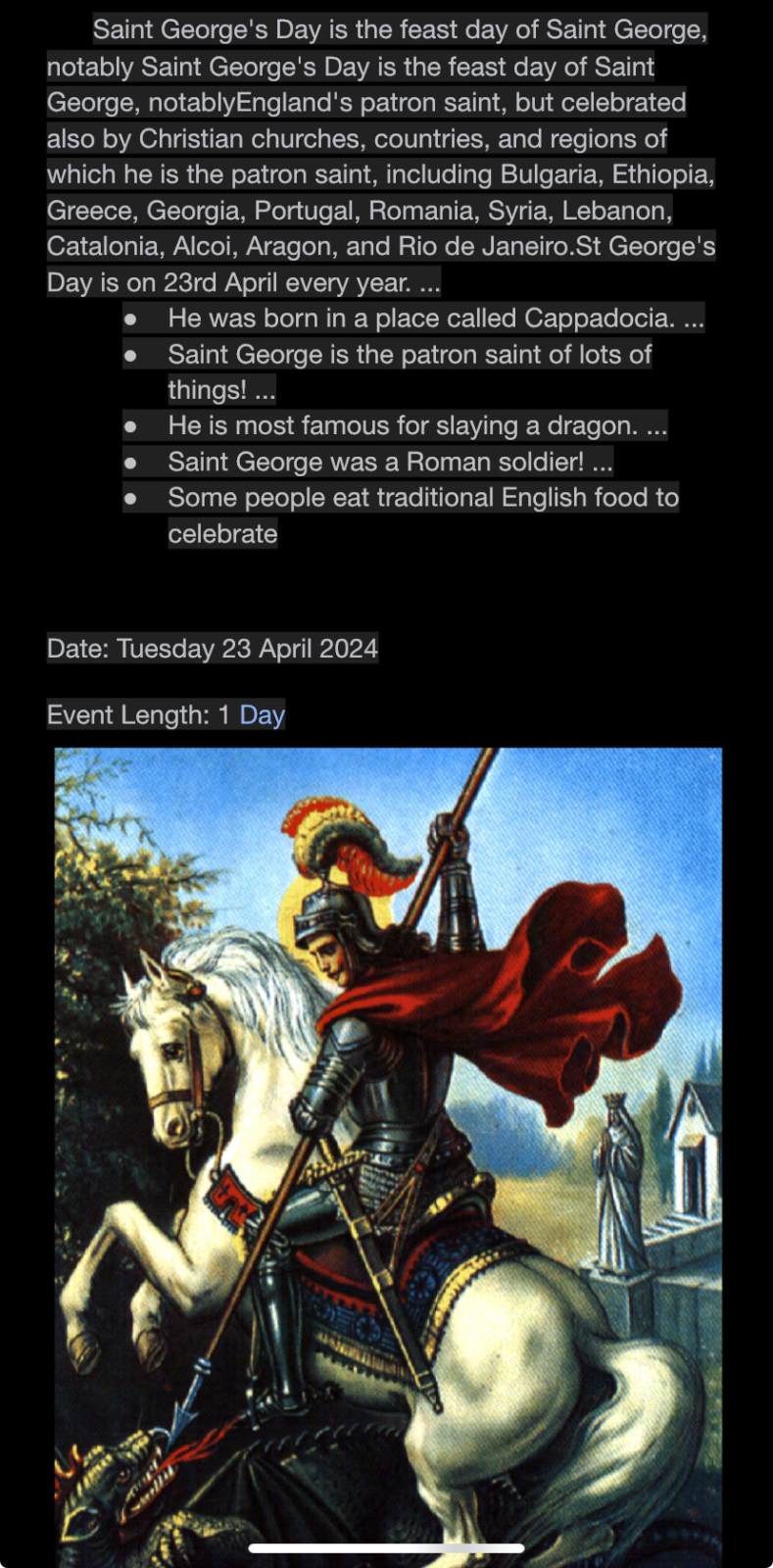 1. St George’s Day is on 23rd April every year.