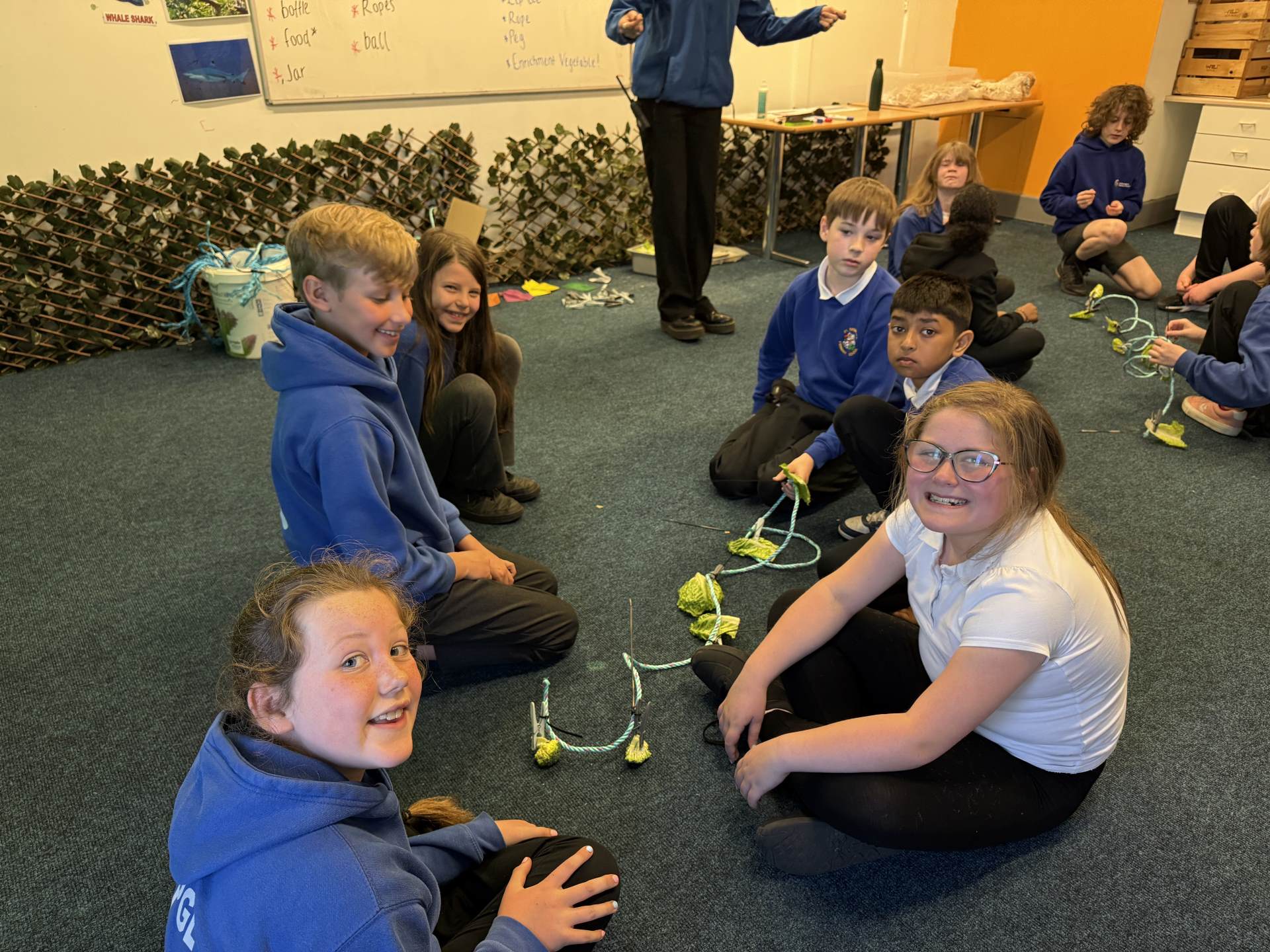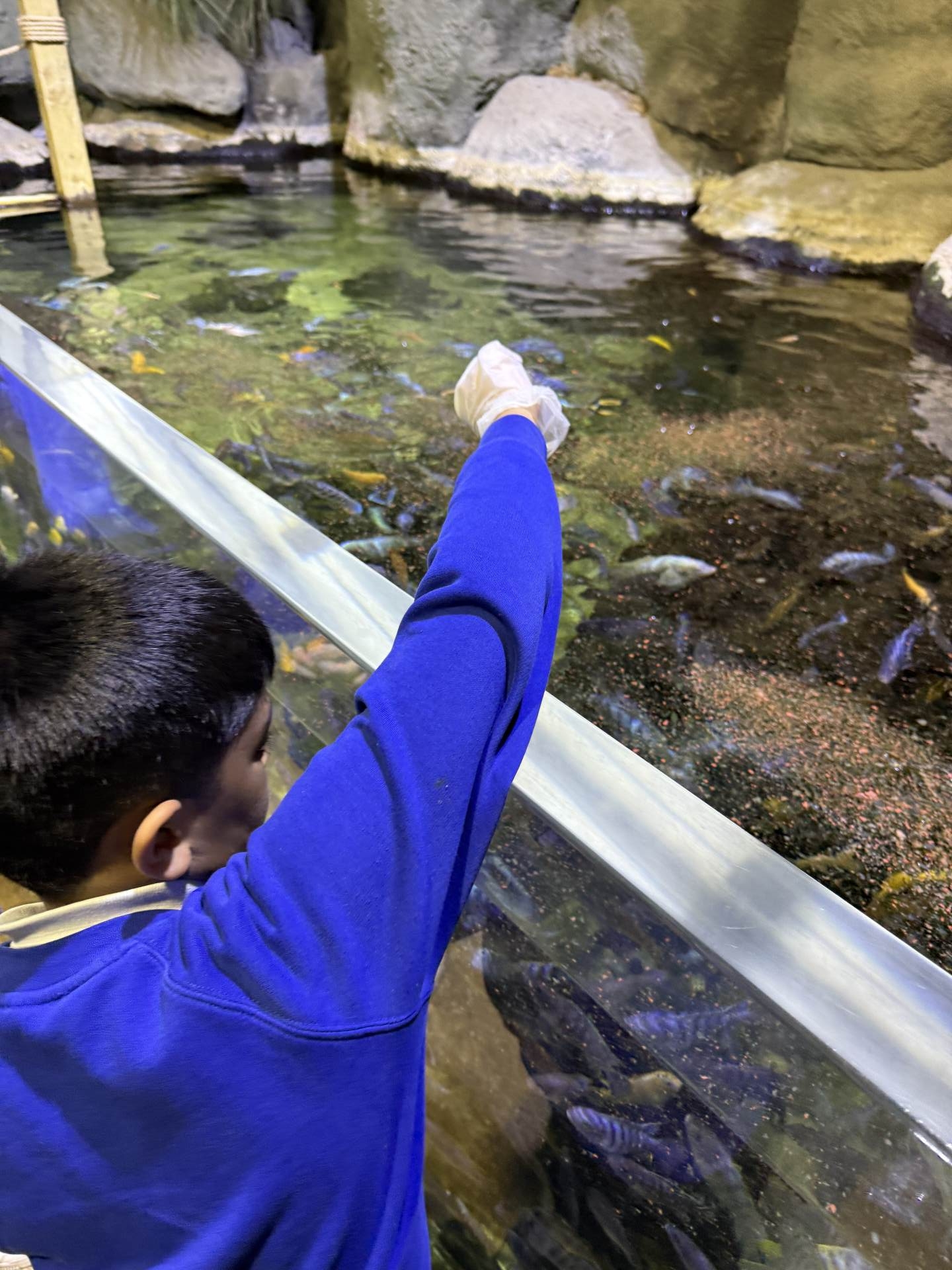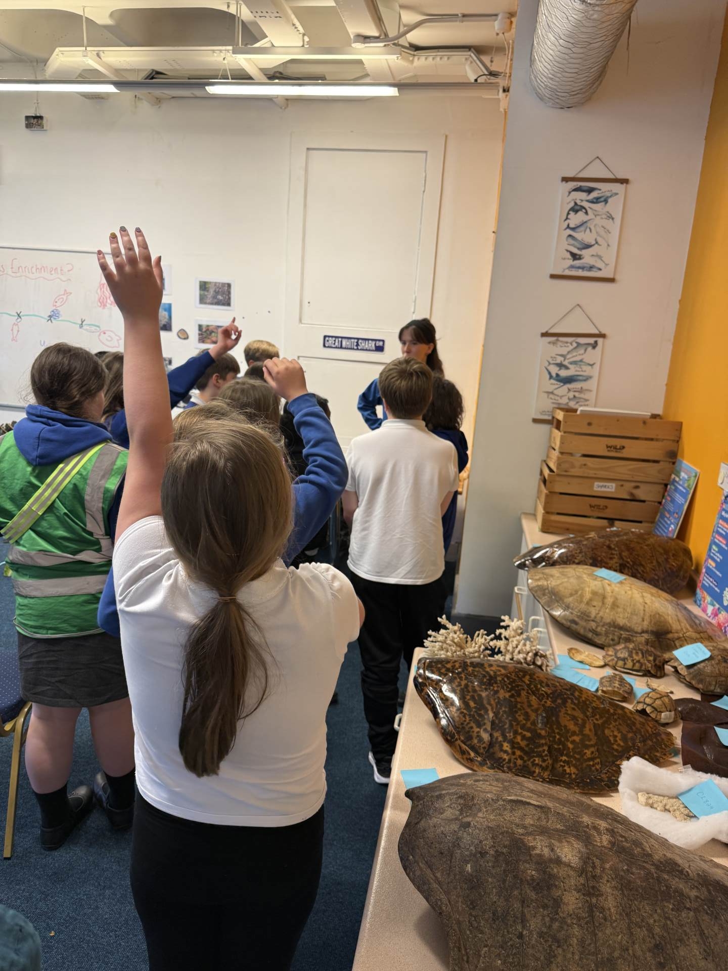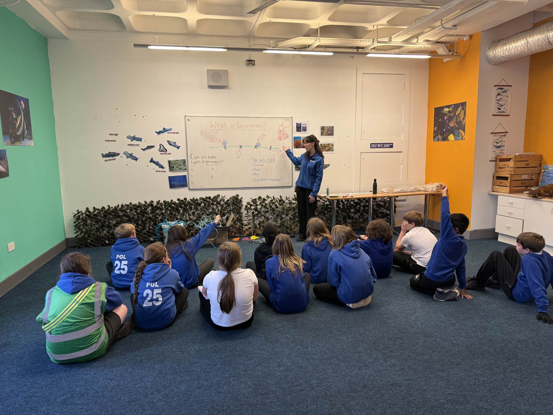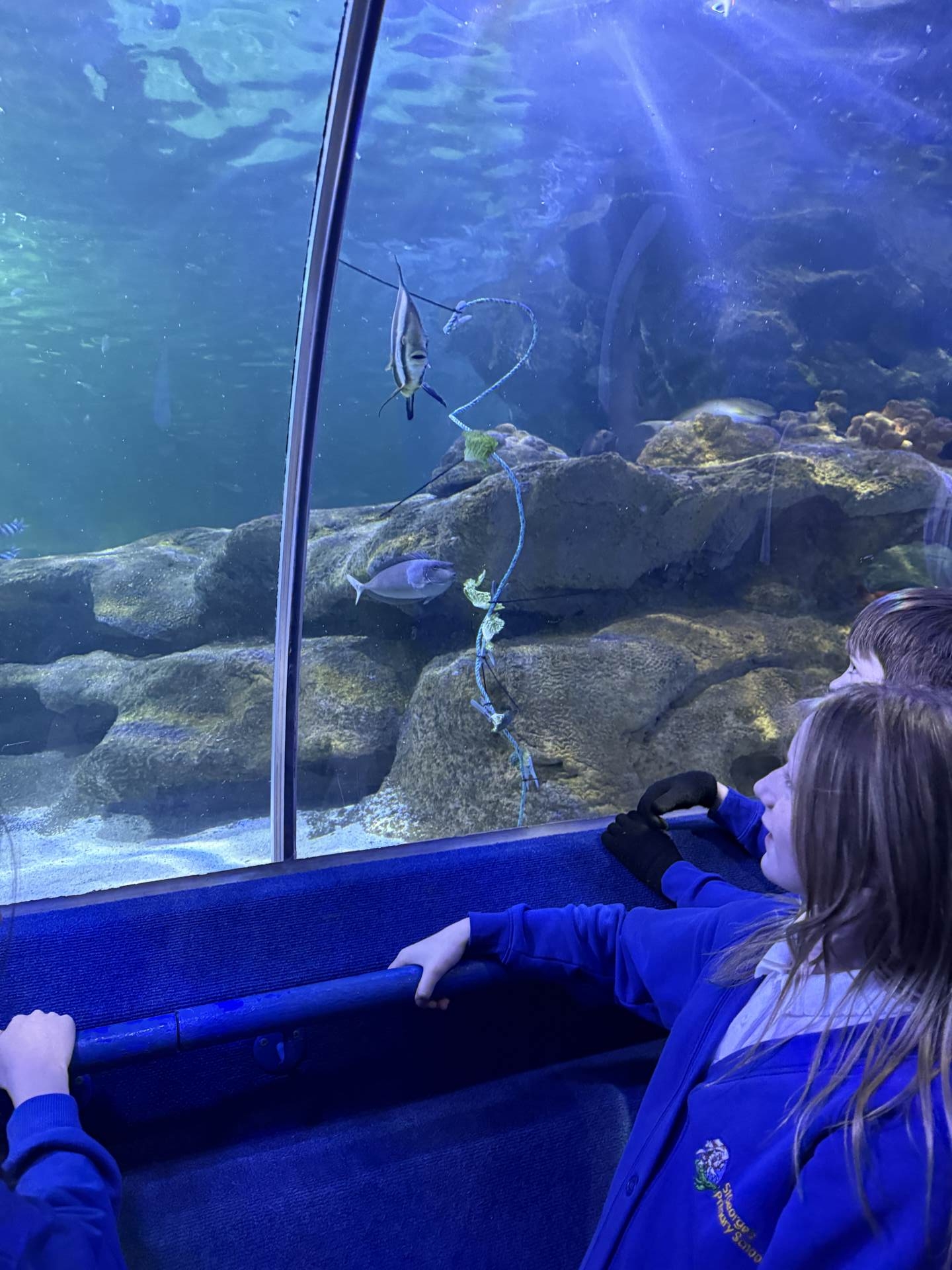 The highlight of the day was a journey through the famous underwater tunnel. As the sharks and rays glided overhead, the students got to see their hard work in action. The divers submerged into the tank, carrying the very enrichment ropes the Eco Team had made earlier that morning!
