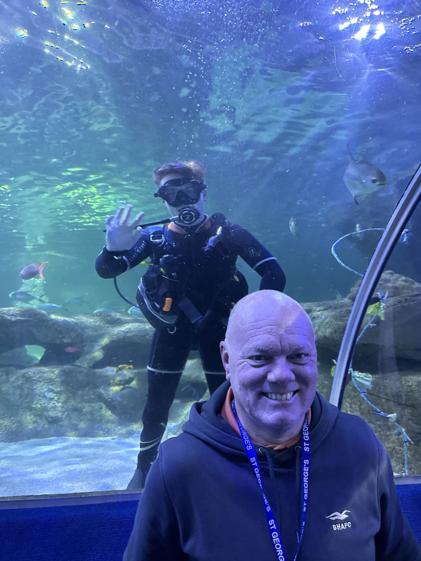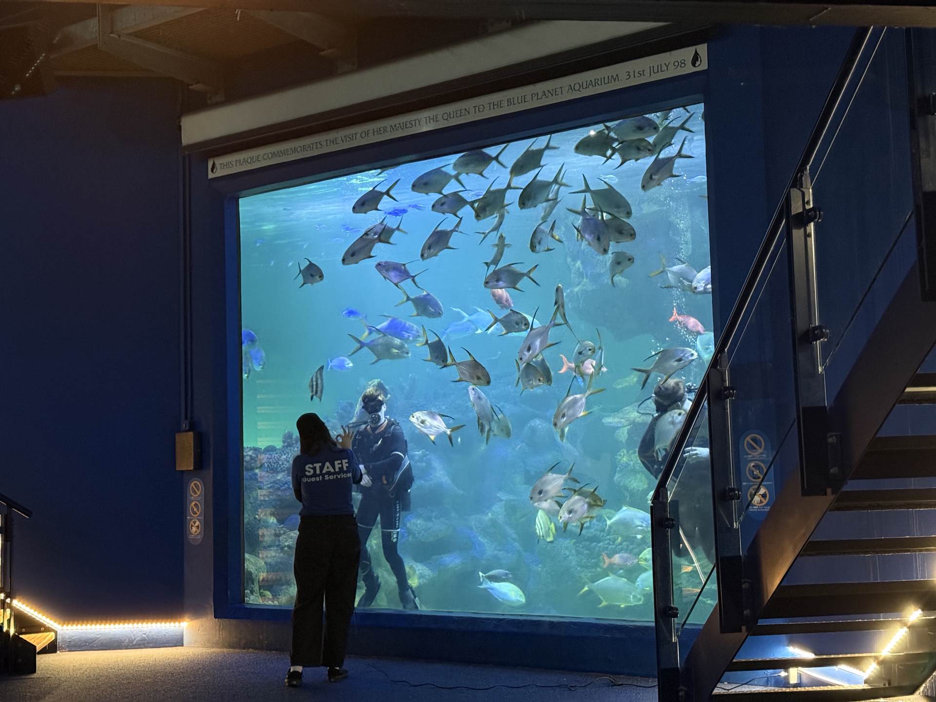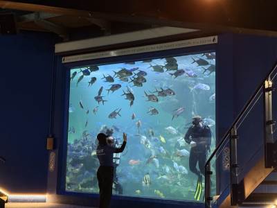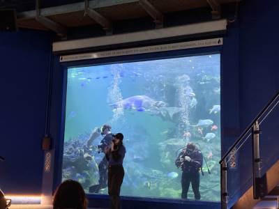 The excitement reached fever pitch as the group gathered at the main tank to watch the professional divers feed the sharks. Seeing these majestic predators up close (and watching the courage of the divers) was a moment nobody will forget! One of the divers, Charlie, is the son of our minibus driver - Pete!