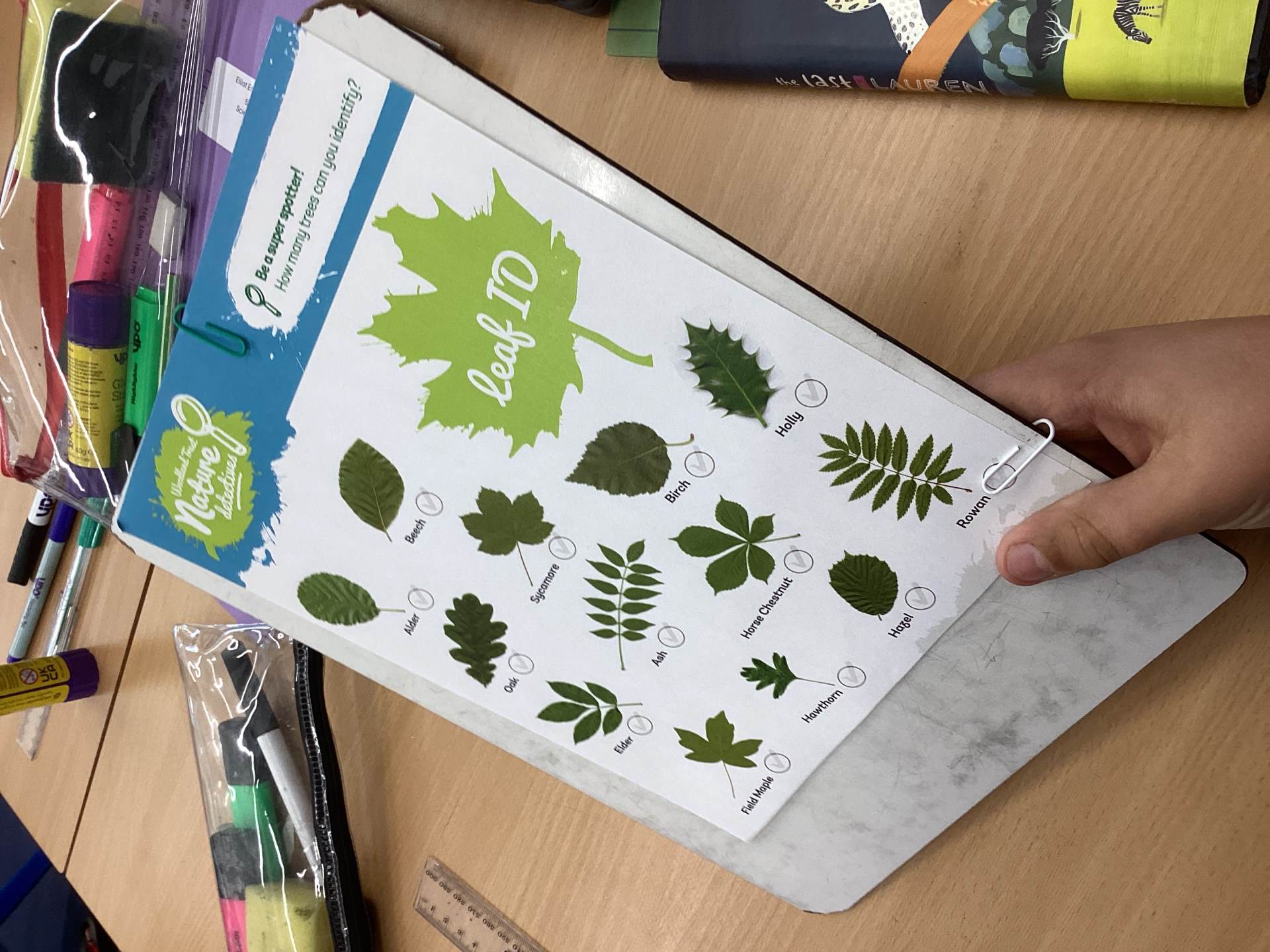 6A have been busy identifying leaves found outside Topsite in order to create a branching key. We scoured through the trim trail area and forest school to find as many different types as possible!