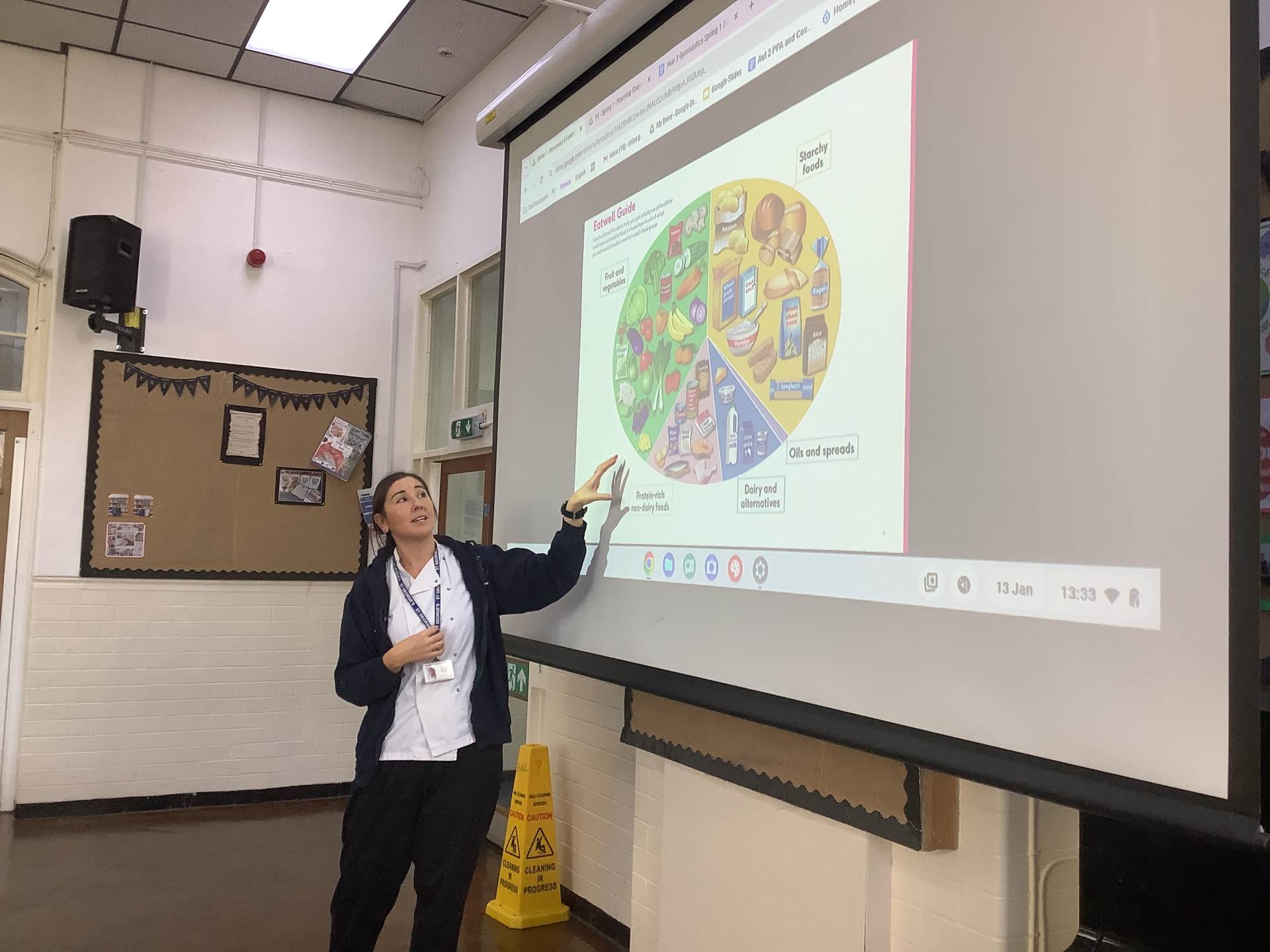 Year three have had a helpful assembly today with Jennie who is our catering manager at school. Jennie is responsible for ensuring all children in our school are having a healthy, balanced diet with a range of different meals. She told the children of other jobs her role involved including; buying the food, managing a team, organising meal plans etc. She talked through the Eatwell Guide with the children and explained how she uses this to help her plan the meals she cooks in school, focussing on getting the right amount of each food type. Jennie also talked us through her career, starting off as a patisserie chef. This interested some of the children and may be a possible career they could think about for the future. Thank you, Jennie for helping us with our science learning!