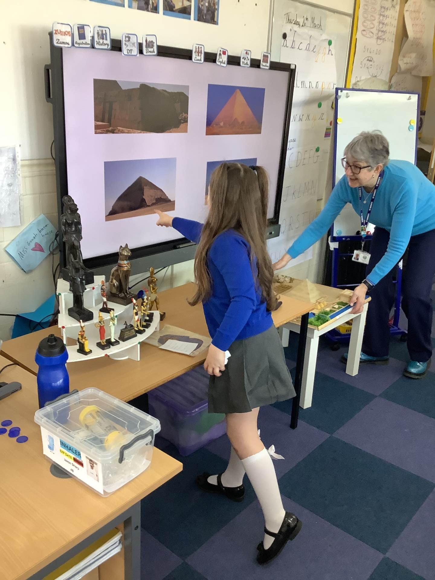 Year 3 had an exciting visit from Julie Marshall today, who spoke to us about Ancient Egypt, including the pyramids and Egyptian gods. She brought in a range of fascinating artefacts, such as models of the gods, which we really enjoyed exploring. Julie also shared photos from her trips to Egypt, where she had the incredible experience of going inside the pyramids.
