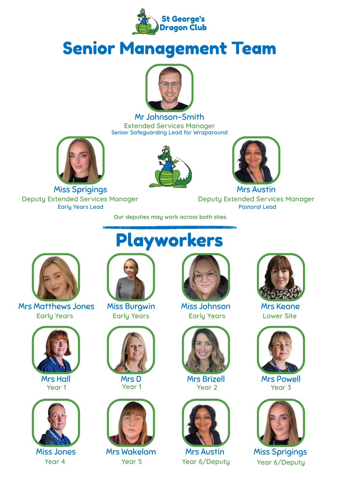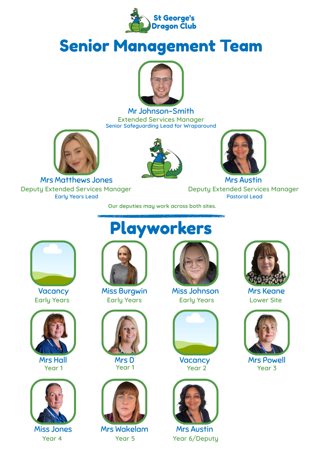 *Staff may work across both sites due to child numbers, and this structure is based around term time & not holiday club.