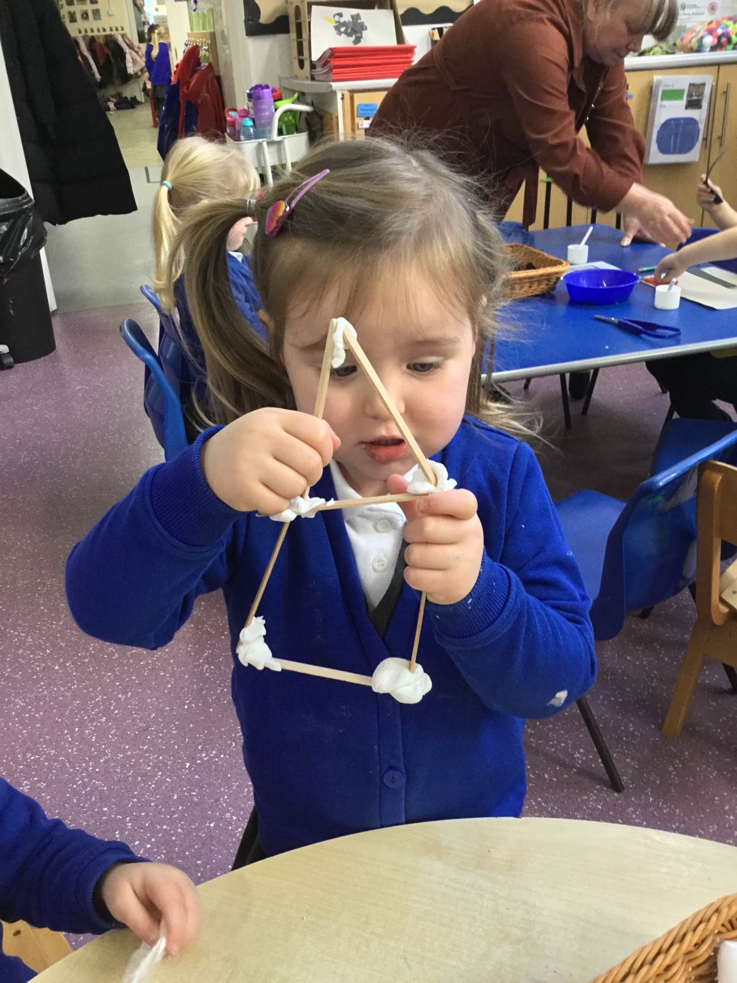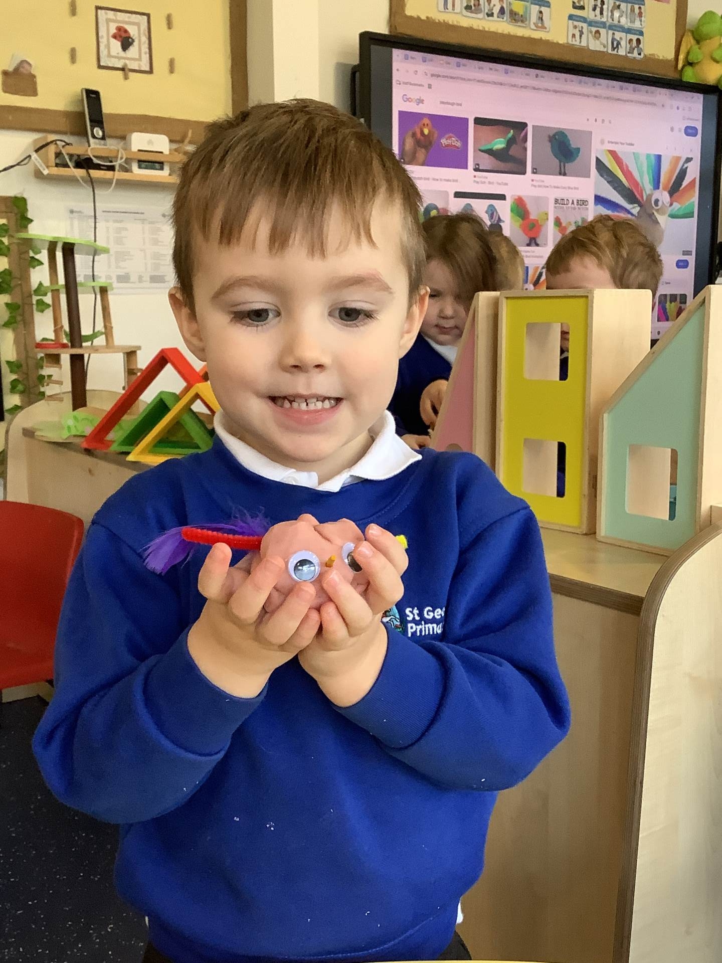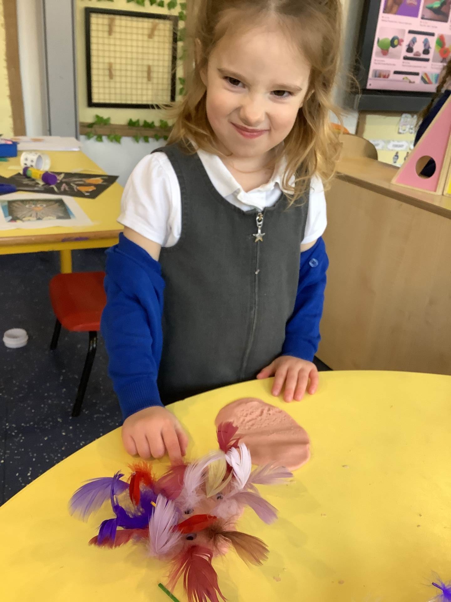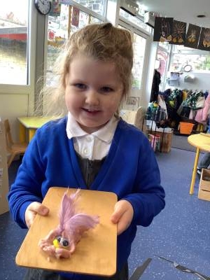 This week we have been learning all about birds, F1A have been enjoying using lolly sticks and marshmallows to make bird houses while F1C have been enjoying making birds using the playdough. Look at our amazing creations.