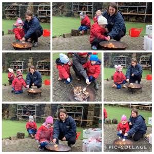 At forest school this week we had a fire, the children were very safe and remembered the forest school rule of 'walking around the fire circle' all the children toasted a bagel remembering the safety stance.