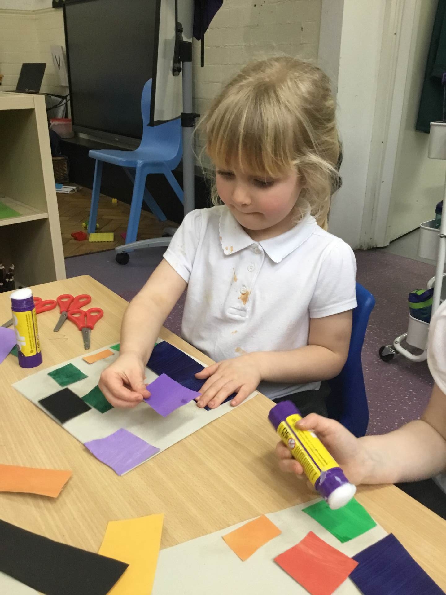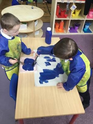This term we are looking at the artist Henri Matisse, in particular his artwork of 'The Snail' the children painted large pieces of paper before cutting them into squares and then recreating the artwork of 'The Snail'.
