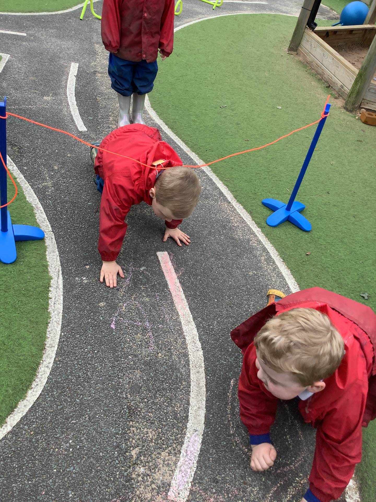 The children have been using their gross motor skills to complete the obstacle course outside, they have been balancing, jumping and climbing under.