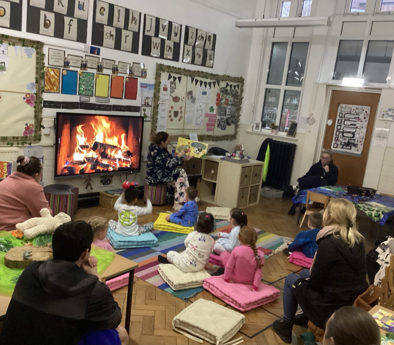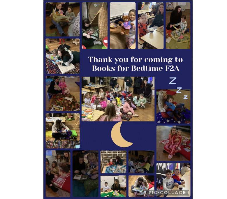 Every year we invite the children back into school once everyone else has gone home for an exciting event - Books for Bedtime. The children come with their grown ups, and also get to wear their pyjamas and bring a teddy. They have a bedtime story read to them by their class teacher and then can explore all of the other books with their grown ups. They can even have a hot chocolate too.